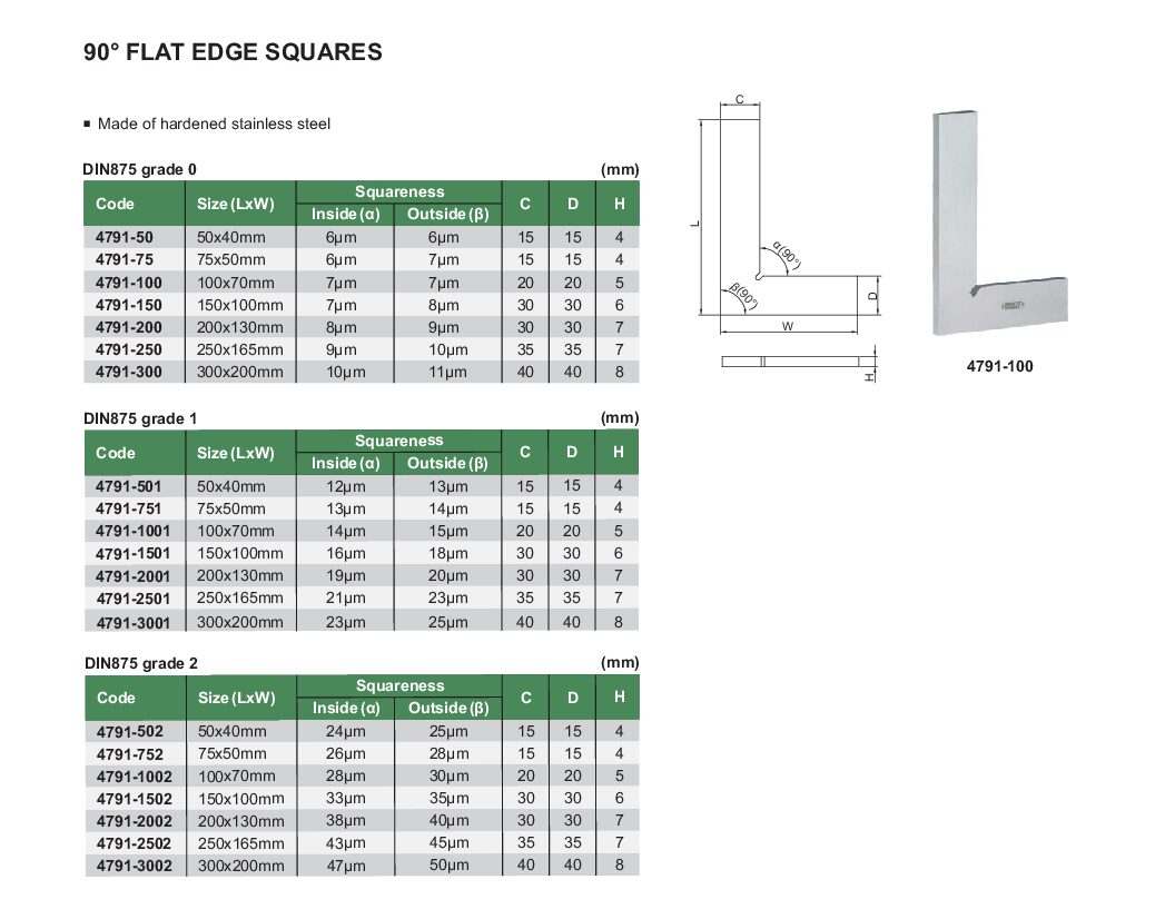 The 4790 Insize 90 Degree Flat Edge Square for inside and outside measurements. Made of hardened stainless steel for longer tool life and durability from machine shop wear.