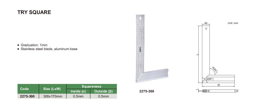 All Products / Insize measuring tools / Insize 300x170mm Try Square – 2275 Series